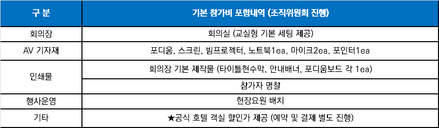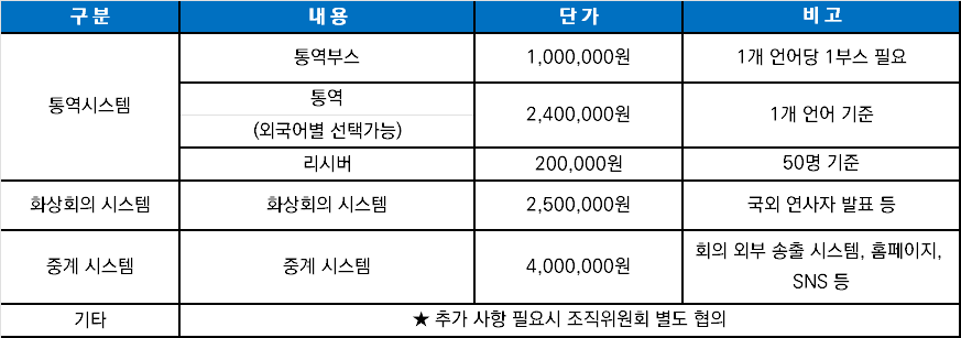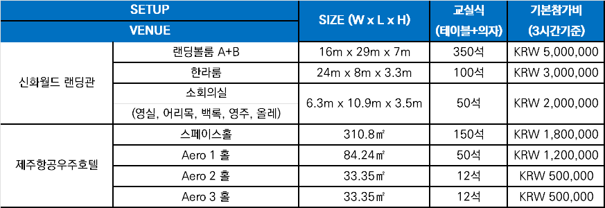 ※ 상기 모든 비용은 부가세 별도 금액입니다. (*랜딩볼룸 & 한라룸만 가능)