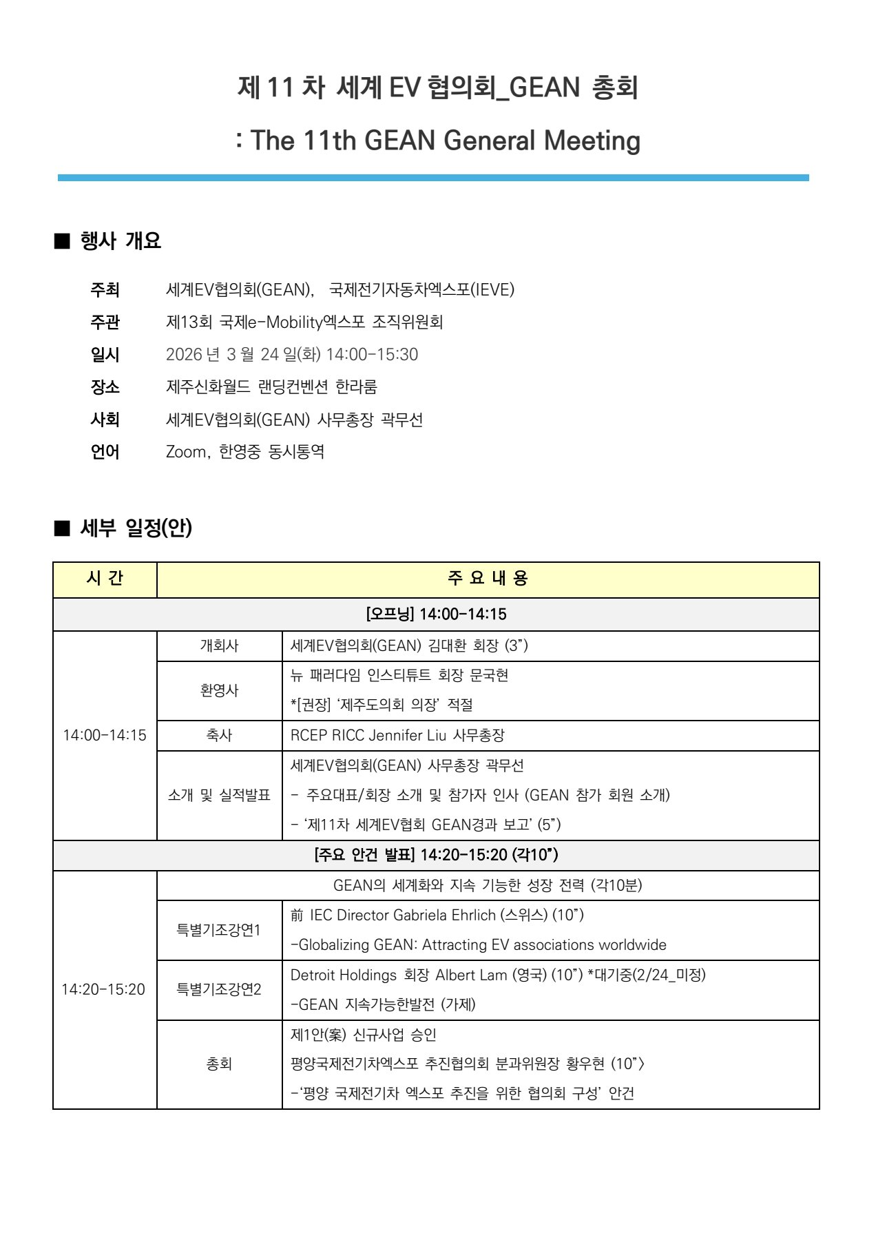 제11차 세계EV협의회 GEAN 총회