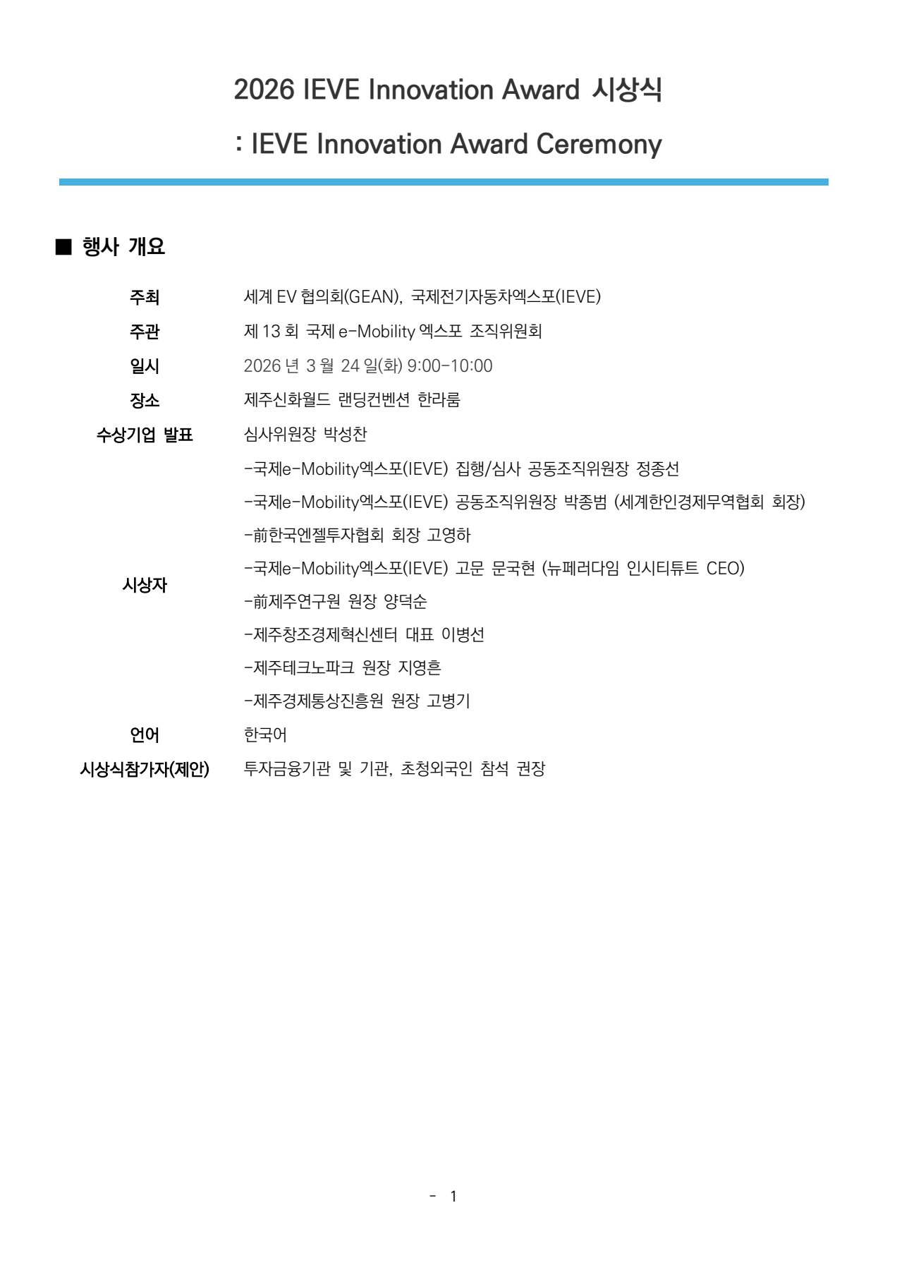 IEVE Innovation Awards 시상식